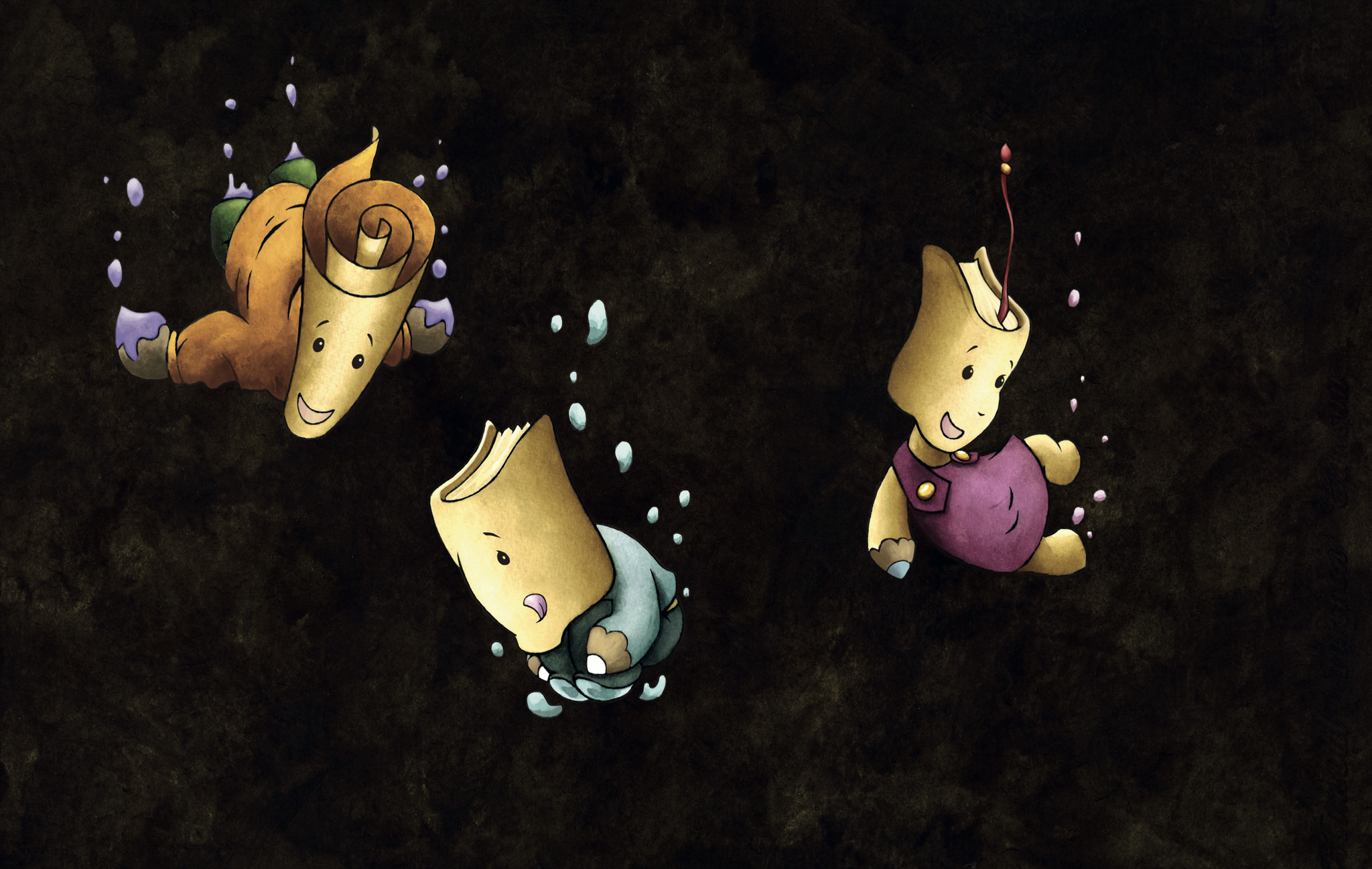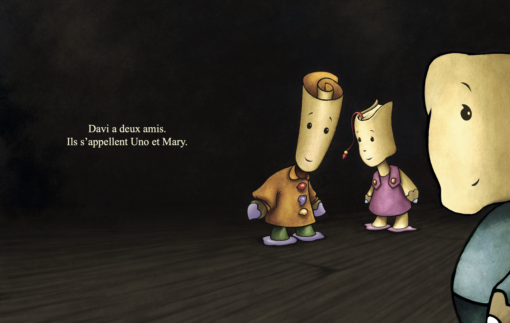Rejoignez Davi, Mary et Uno, la fine équipe d'enfants-livres de notre histoire !