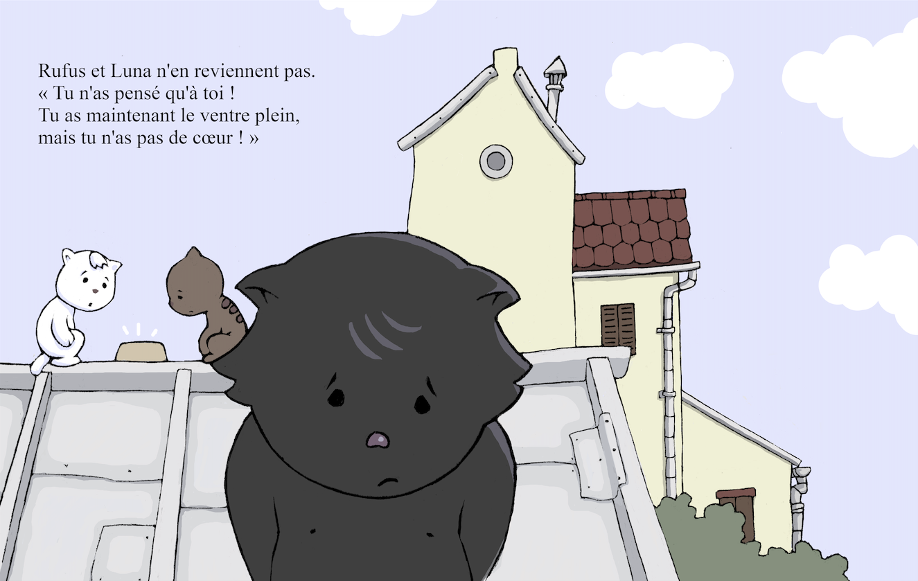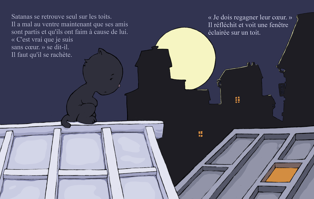Satanas est un petit chat qui vit sur les toits avec ses deux amis Rufus et Luna.